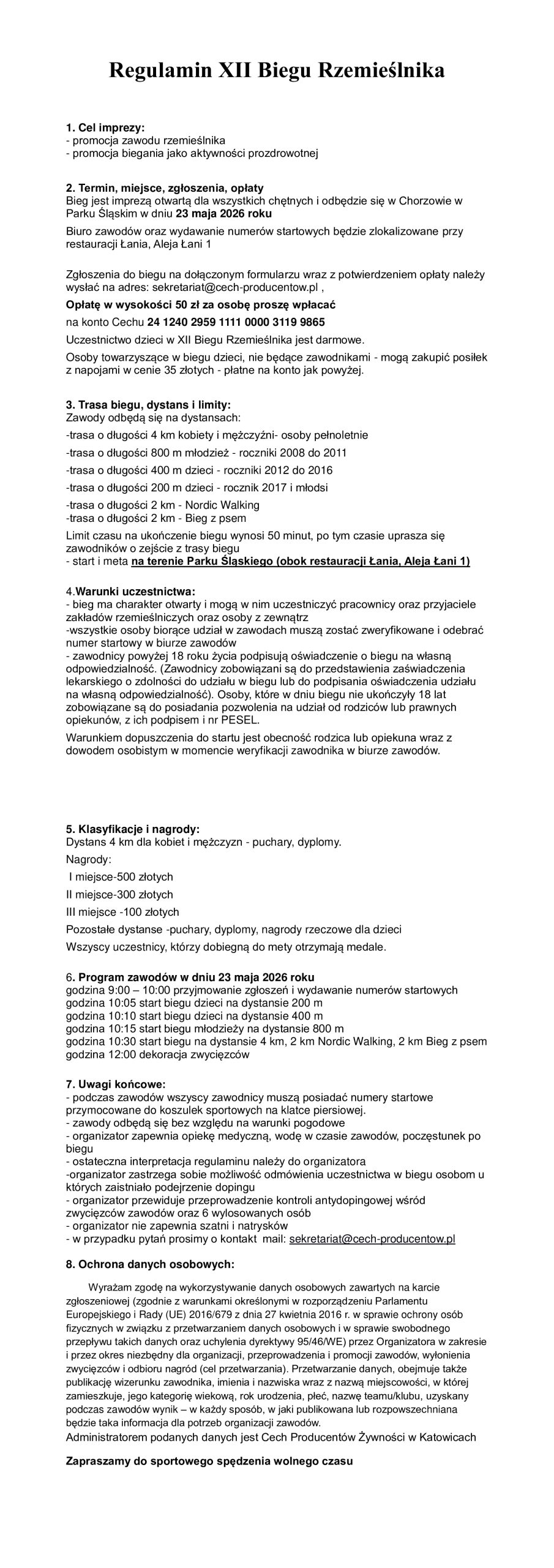 XII Bieg Rzemieślnika -23 maja 2026r