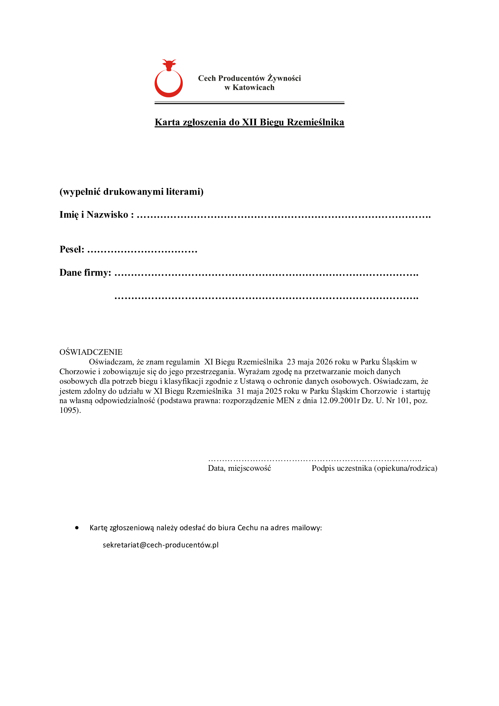 Karta zgłoszeniowa
